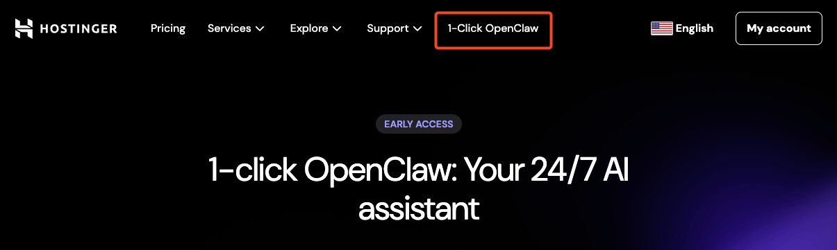 - Get your 1-Click OpenClaw plan: Visit the Hostinger page for your brand and select 1-Click OpenClaw.