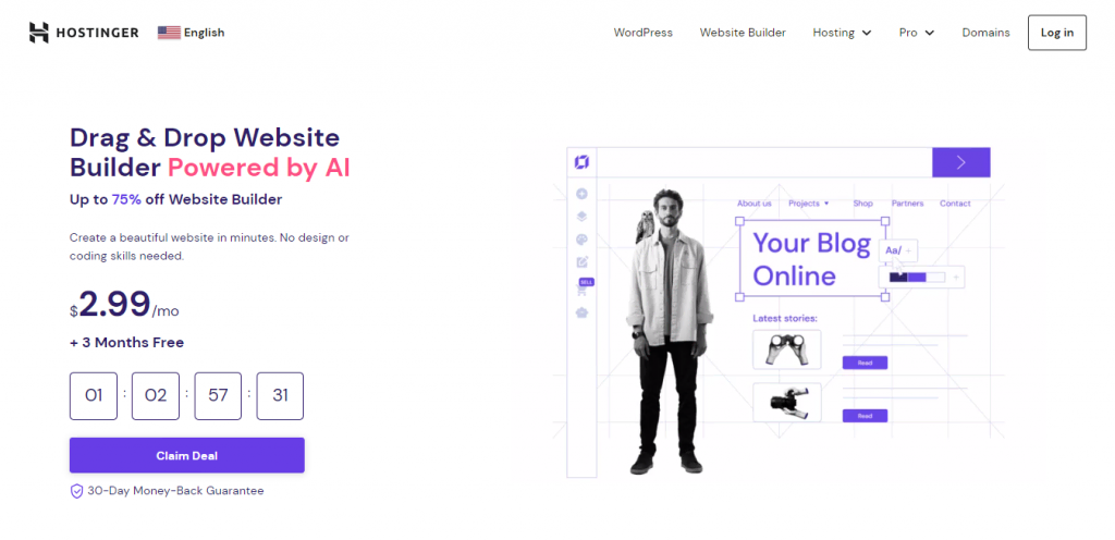 • Hostinger Website Builder – uses AI to set up your store in minutes, making it perfect for beginners.