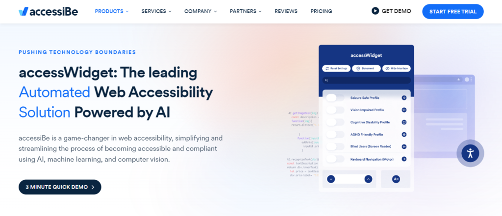 If legal accessibility is your primary concern and you don’t mind paying a premium price, accessiBe is perfect. It’s an AI-powered web accessibility plugin that provides daily scans, analysis reports, and 24/7 compliance with ADA, AODA, and EAA.