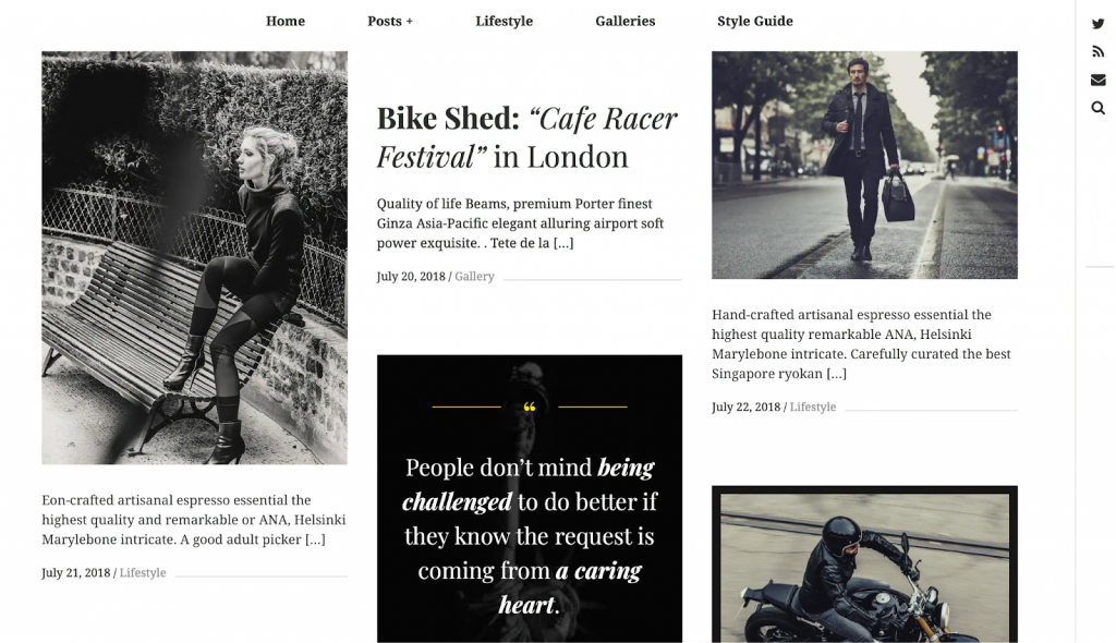 It’s simple and lightweight but packs useful features, including five article layouts, infinite scrolling, social sharing buttons, and a reading progress bar.