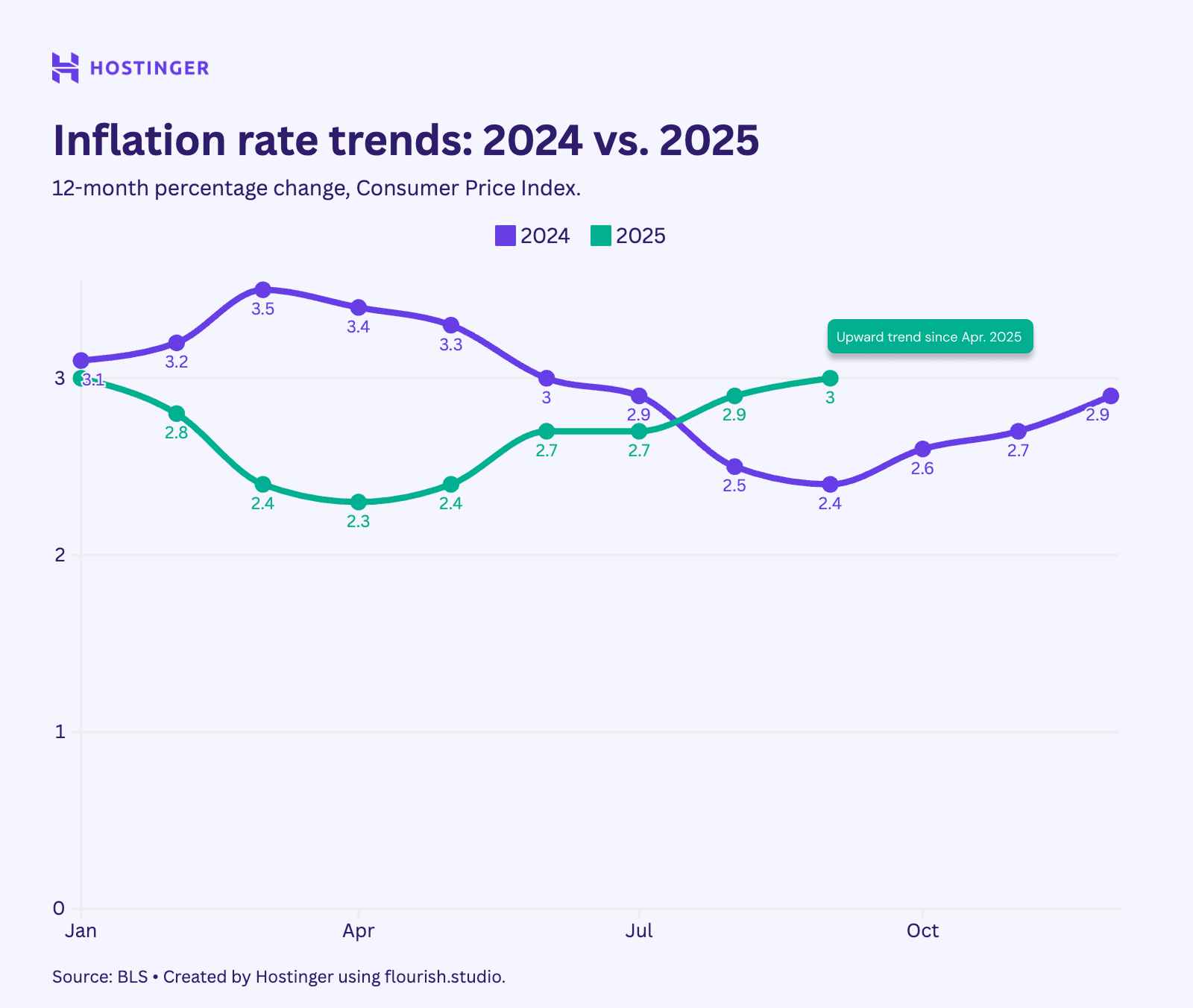 After inflation rates cooled in the spring of 2025 (dropping to 2.3% in April), they have trended back upward toward 3% by September. This contrasts with 2024, during which inflation rates gradually declined during the same period.