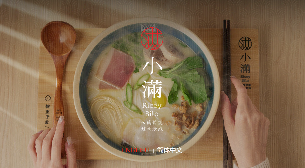 Visitors must first choose their preferred language – English or Japanese – to access the site. Then, a full-screen video of Ricey Silo’s steamy rice noodles will greet you upon opening the homepage.