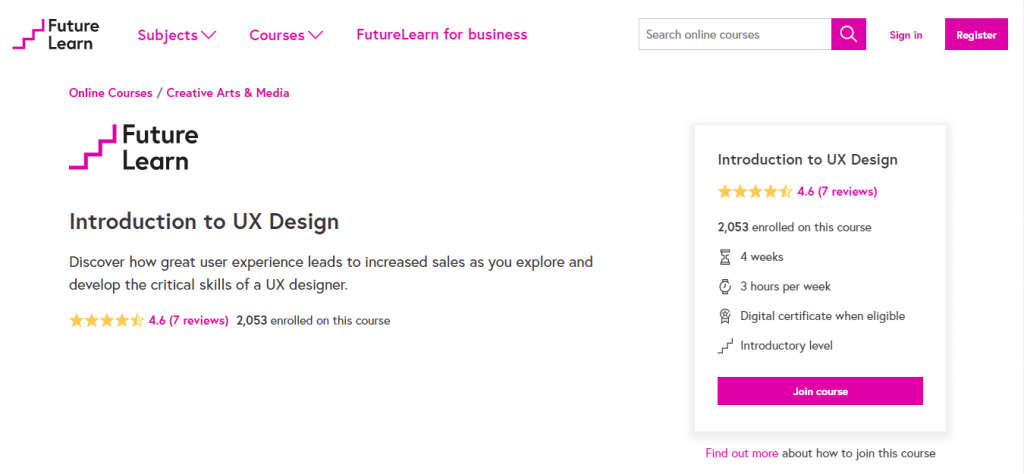 5. FutureLearn – User Experience (UX) Design and Research