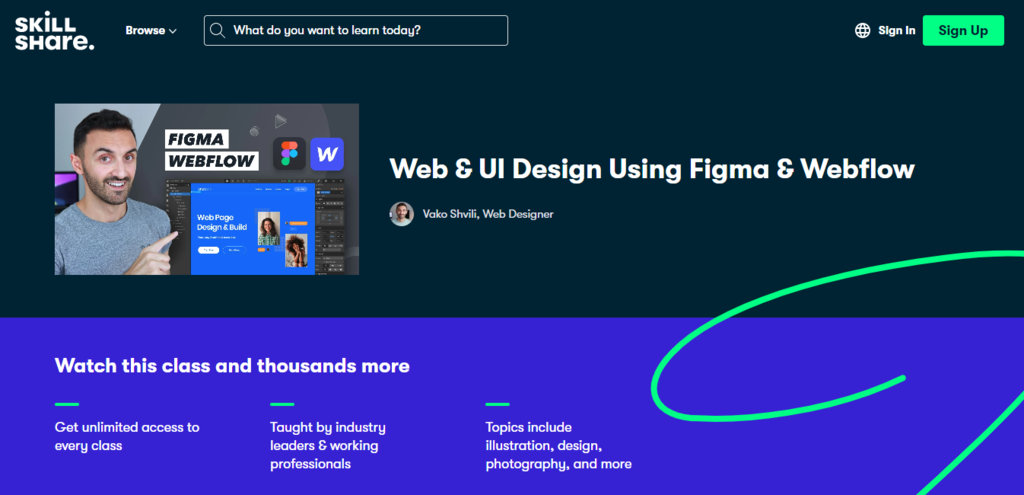 The Design 101 course is suitable even for those unfamiliar with web design software. Through this class, you’ll master basic graphic design principles like sketching, hierarchy, and imagery and implement them on websites or web applications.