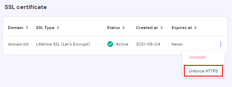 Хоча рекомендується використання перенаправлення на HTTPS, Ви можете вимкнути його і завантажувати свій сайт через HTTP. Таке з’єднання може знадобитися для тестування або у зв’язку з особливими вимогами.