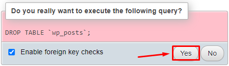 Зверніть увагу, що видалення таблиць бази даних призведе до безповоротного видалення даних.