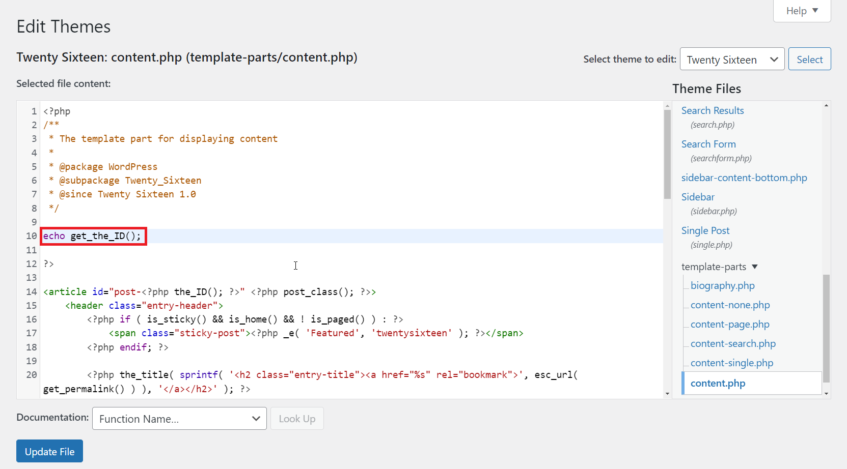 We recommend backing up your WordPress site before testing these functions. We will show you how to use the get_the_ID() function: