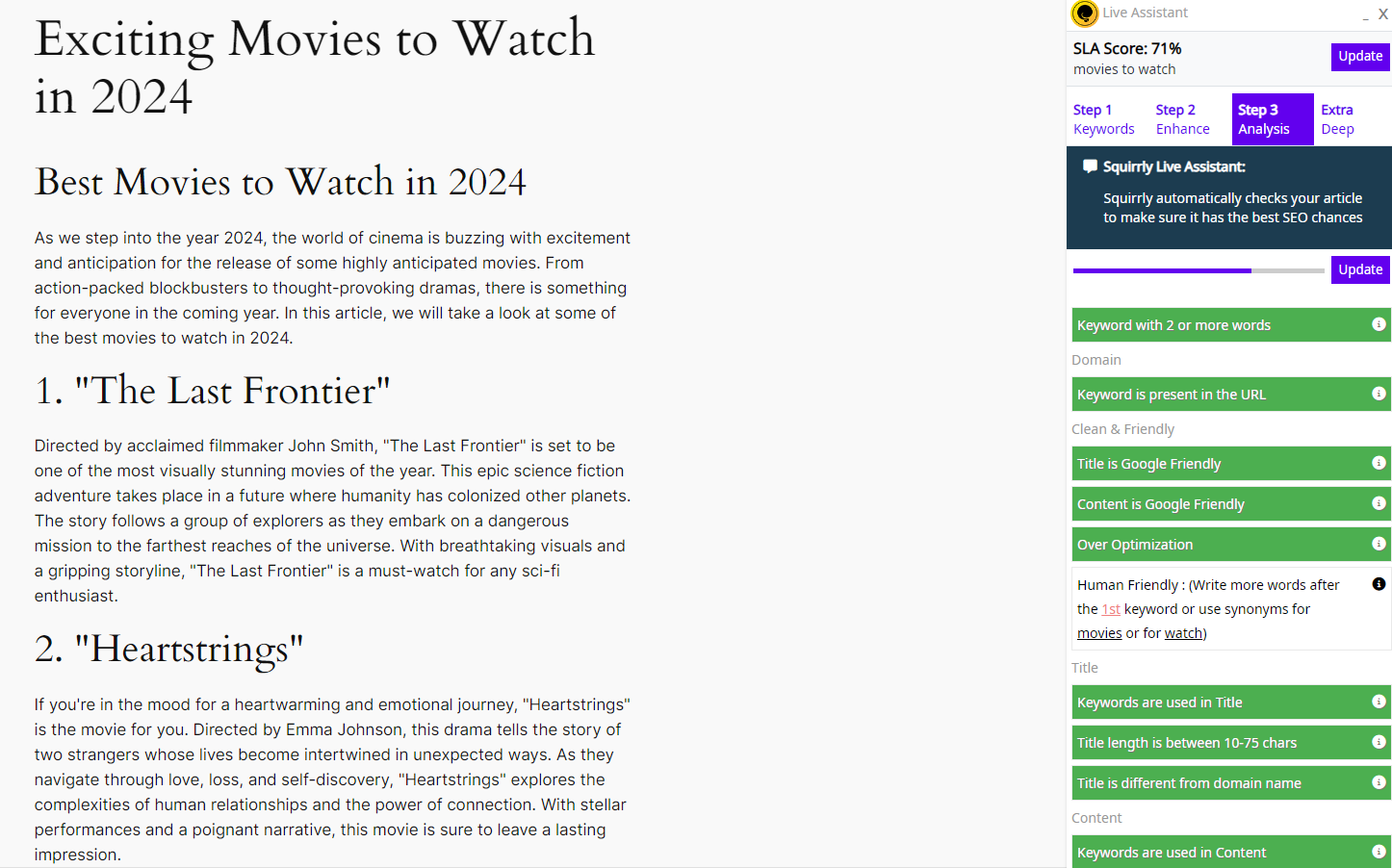 - Live assistant – get keyword suggestions for content optimized for both search engines and human readers.