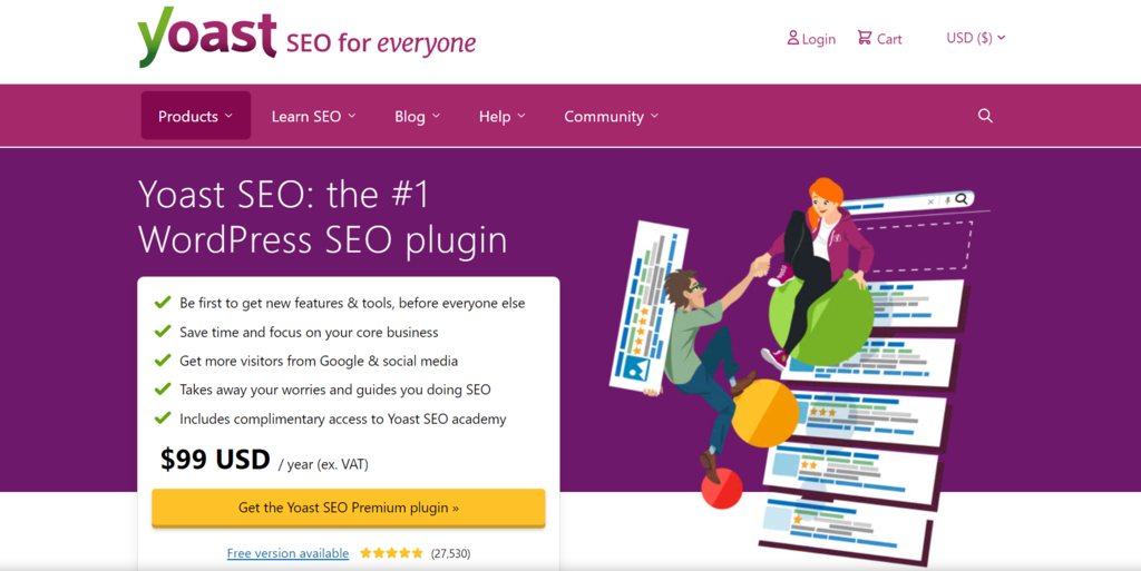 Some of the most popular WordPress plugins for marketing and SEO are Yoast SEO, AIOSEO, HubSpot, and Jetpack. For instance, Yoast SEO provides suggestions to optimize on-page content for search engines.