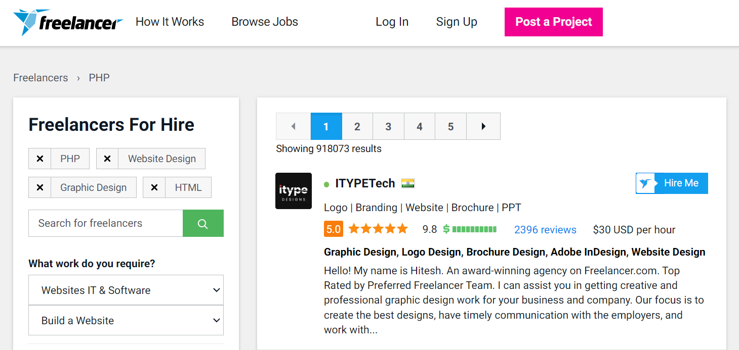 Best known for its IT and development services, Upwork is a freelance platform that lets you choose from plenty of developers for your projects.