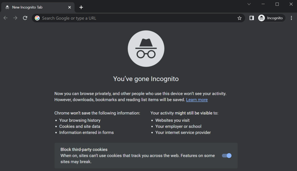 The incognito mode allows you to browse the internet without affecting your user data. It keeps important information isolated in the main browsing session, minimizing data theft risk when visiting a malicious link.
