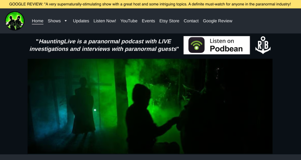This website example hosts a podcast that explores paranormal-themed occurrences, such as haunting tales from across the globe.