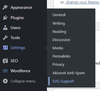 - Navigate to Settings -> SVG Support from your WordPress dashboard.