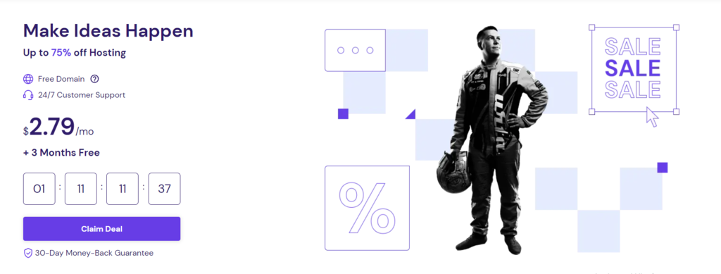 A good example of a CTA button is the purple “Claim Deal” button on Hostinger’s landing pages. The countdown timer also conveys a sense of urgency, urging visitors to take action.